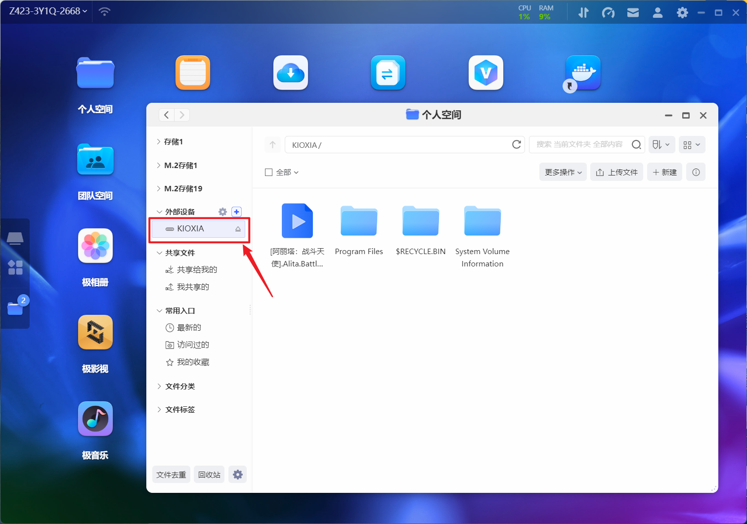 🔺同时我也测试了下它对NAS的兼容性。可以看到我手头的极空间NAS是完美识别,并且已经顺利读取到硬盘中的数据。