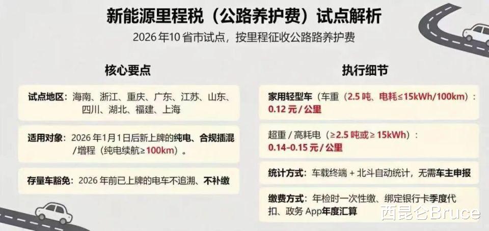 近日,一则“国内10省市自2026年1月1日起试点开征新能源汽车里程税”的消息在社交平台疯狂传播。