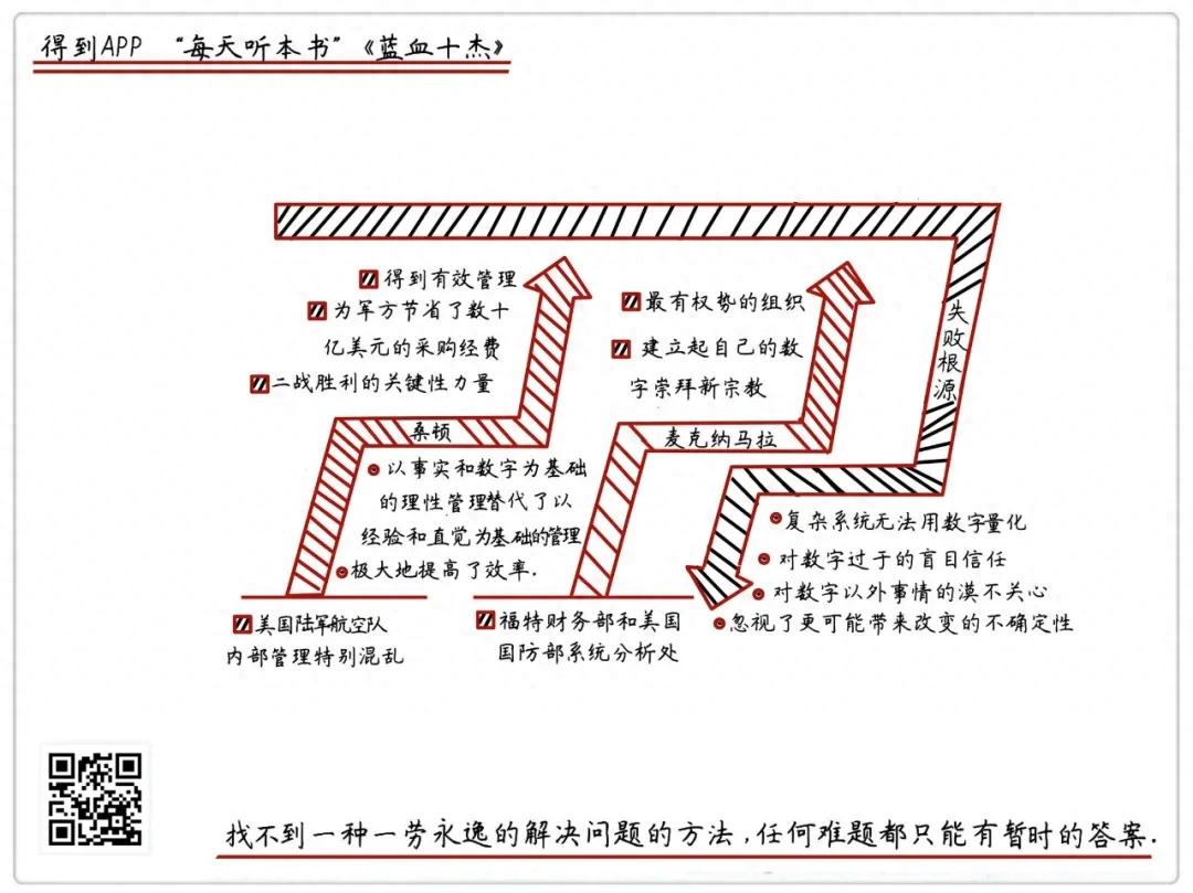 介绍完这本书的基本情况,那么下面,我就为你来详细讲述书中内容。蓝血十杰的故事主要有三个重点内容:第一点,十杰用以事实和数字为基础的理性管理,替代了以经验和直觉为基础的传统管理,从混乱中建立起秩序,从而极大地提高了效率;第二点,十杰把数字分析部门,如军队的统计部门和公司的财务部门,变成了组织中最有权力的机构,并且把数字信仰变成了一种新宗教;第三点,十杰的致命盲点,就是无法用数字来量化的复杂系统,这一点,后来成为他们失败的根源。