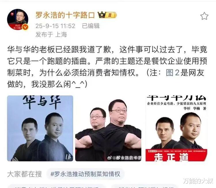 2、你明明可以讲真话相反呢,10年收了西贝6000万咨询费的乙方——华与华老板,公开给贾老板头上“浇汽油”!然后引火上身后,悄悄给罗永浩道歉。