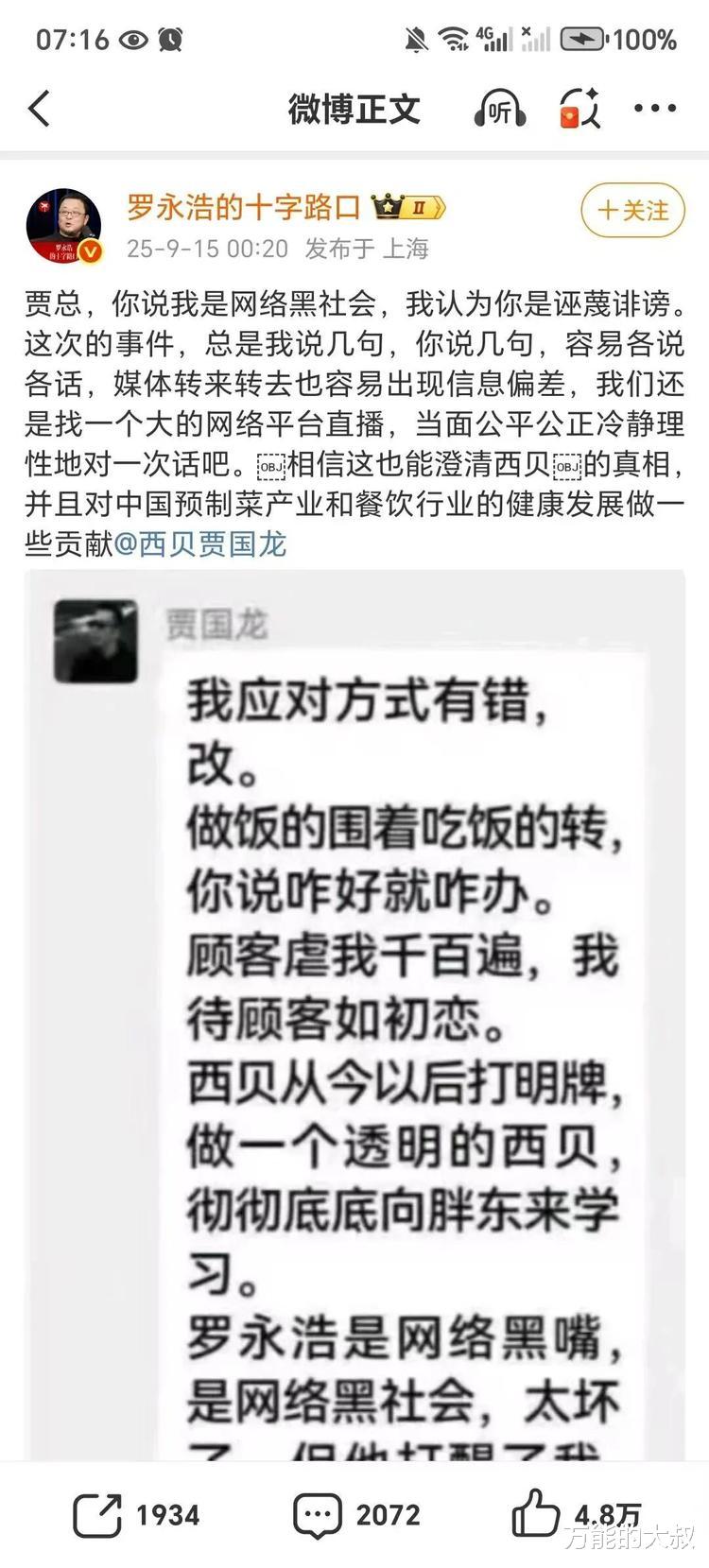 3、你明明可以甩锅给乙方本来,老罗昨天早些时候说,西贝的事告一段落。