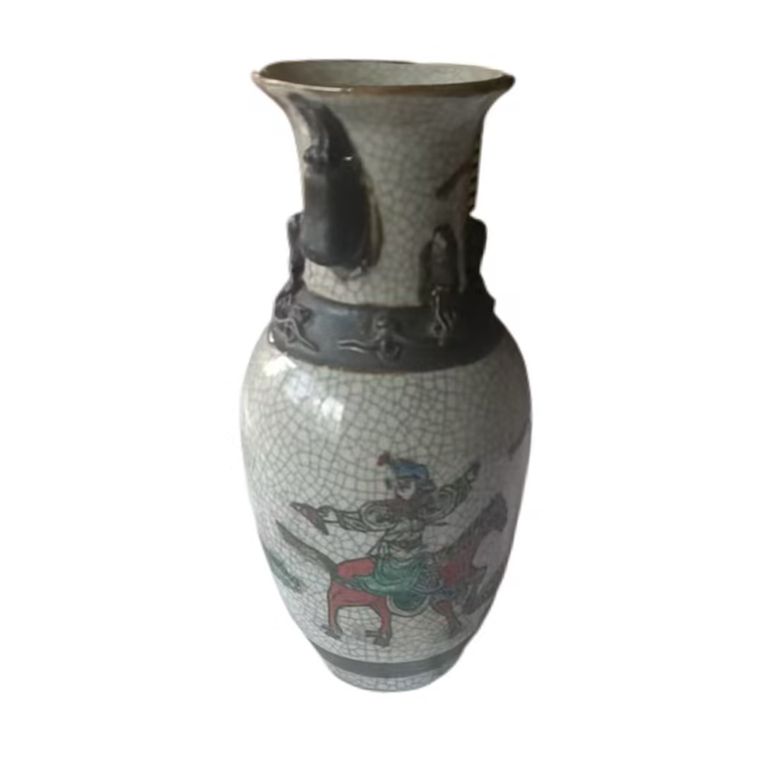 在清代瓷艺收藏的价值疆域中,一件哥釉五彩刀马人物纹兽耳瓶堪称 “瓷界跨界的价值寡头”。它以 “哥釉开片的古典垄断 + 五彩刀马人的市井霸权 + 兽耳器型的符号稀缺” 为核心价值引擎,在冰裂纹的雅致肌理与刀马人物的激昂叙事间,实现了收藏价值的指数级裂变。从清代窑坊的工艺突破到全球藏家的竞相追捧,这件瓷瓶不仅是清代哥釉五彩的顶级孤品,更是破译其价值体系、工艺密码与财富逻辑的核心密钥。