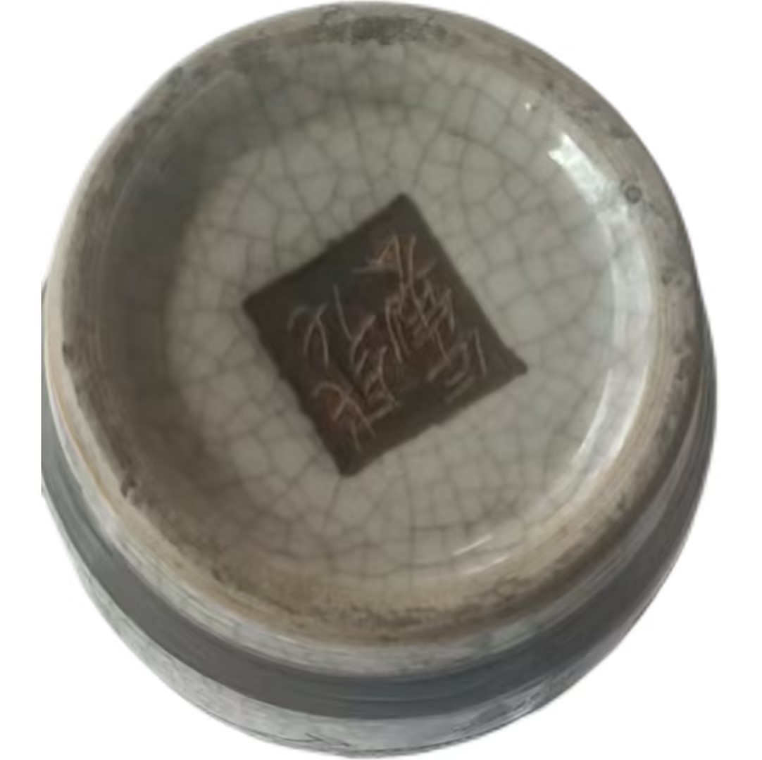 技术垄断:融合 “哥釉开片” 与 “五彩装饰” 两大高难度工艺,哥釉开片需精准控制胎釉收缩比(误差≤0.5%),五彩叠烧需掌握复杂窑温曲线(温差≤10℃),这种 “高冷哥釉 + 热烈五彩” 的跨界组合,在清代瓷艺中仅少数窑坊可实现,存世量不足百件;