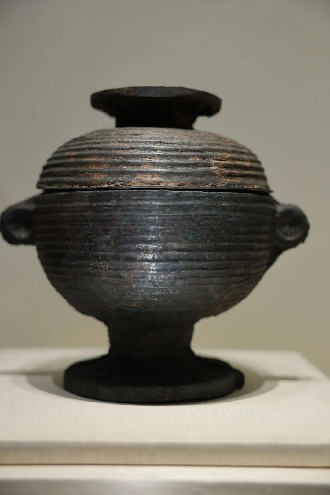 瓦楞纹青铜盖豆 战国 安徽淮南武王墩一号墓出土