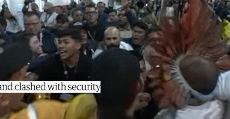 一群由原住民和非原住民组成的抗议者强行冲入会议中心,与联合国安保人员发生肢体接触,导致两名安保人员受伤及场馆设施受损。