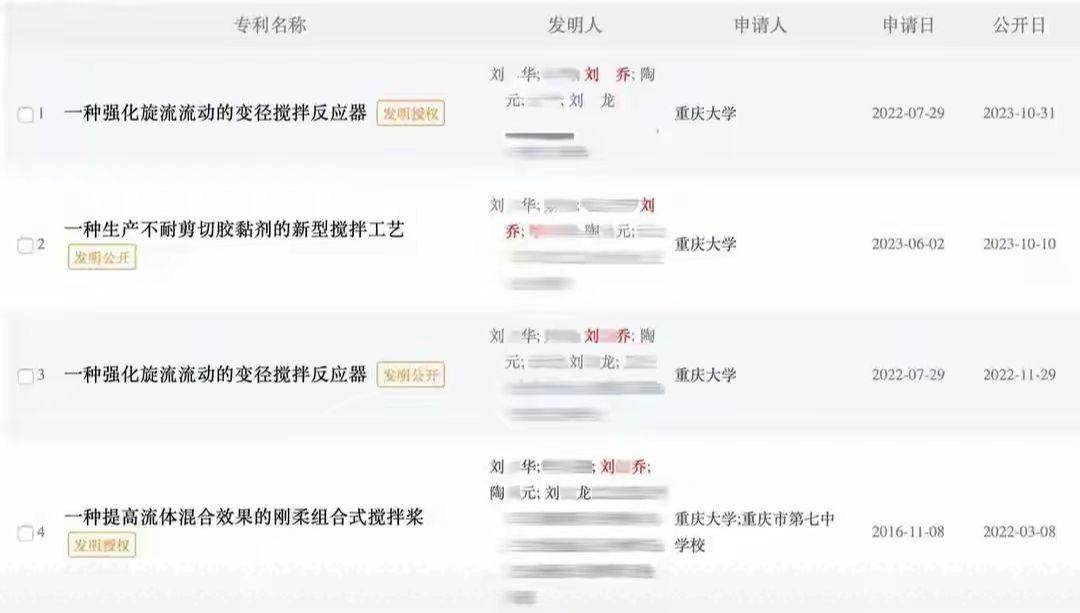 不仅如此,刘某乔还有3项国家发明专利,其最早参与的发明专利申请于2016年,按照时间推算,刘同学当时还是年仅13岁的初一学生,如此惊人的科研产出,让人很难不产生怀疑。
