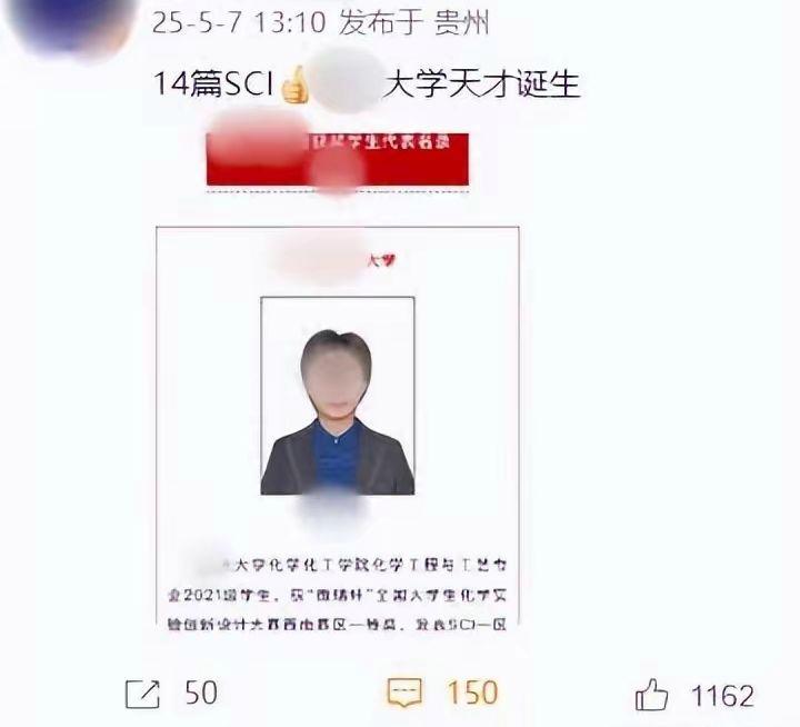 众所周知,本科生的主要任务是学习专业基础知识,科研经验和时间都相对有限。而发表14篇SCI论文,意味着在科研选题、实验设计、数据处理、论文撰写等方面都具备极高的能力,还需要有充足的科研时间和资源支持,一个本科生是绝对做不到的。