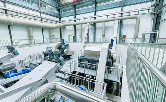 预处理系统中主要包括卸料斗、集气室、无轴螺旋输送机、破碎机、生物物质破碎分离机、螺旋脱水机、刮板输送机等设备。为节约场地使用面积,预处理系统一般又采用地坑式结构,主要的预处理设备都放在地坑下面,预处理系统主要是对餐厨、厨余、果蔬等各类有机垃圾预处理,达到破碎、分拣、除油去盐及脱水的目的。
