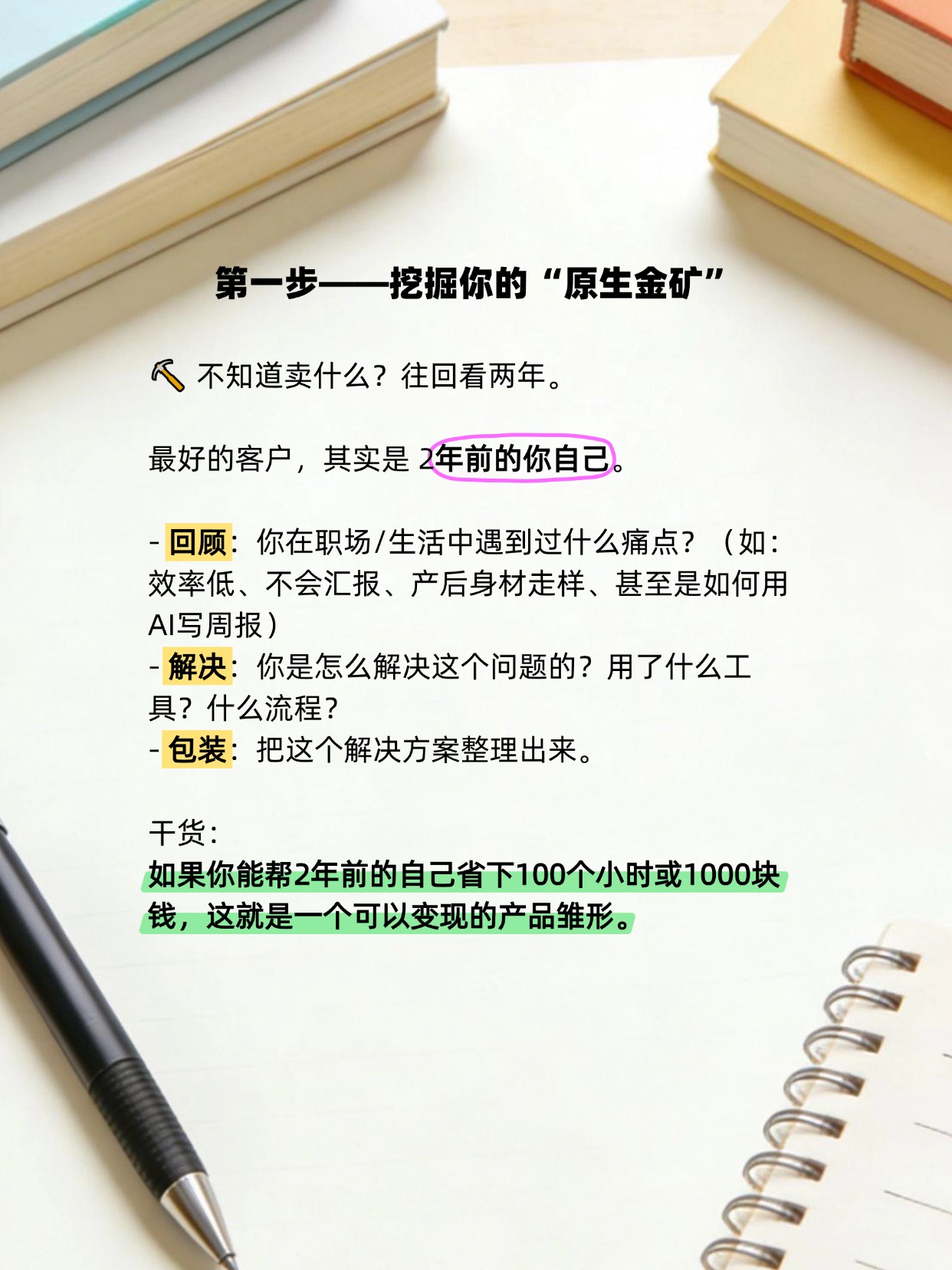 2️⃣ 服务“过去的自己”:你现在的常识,可能是两年前自己的救命稻草。在这个信息差里,藏着巨大的商业价值。