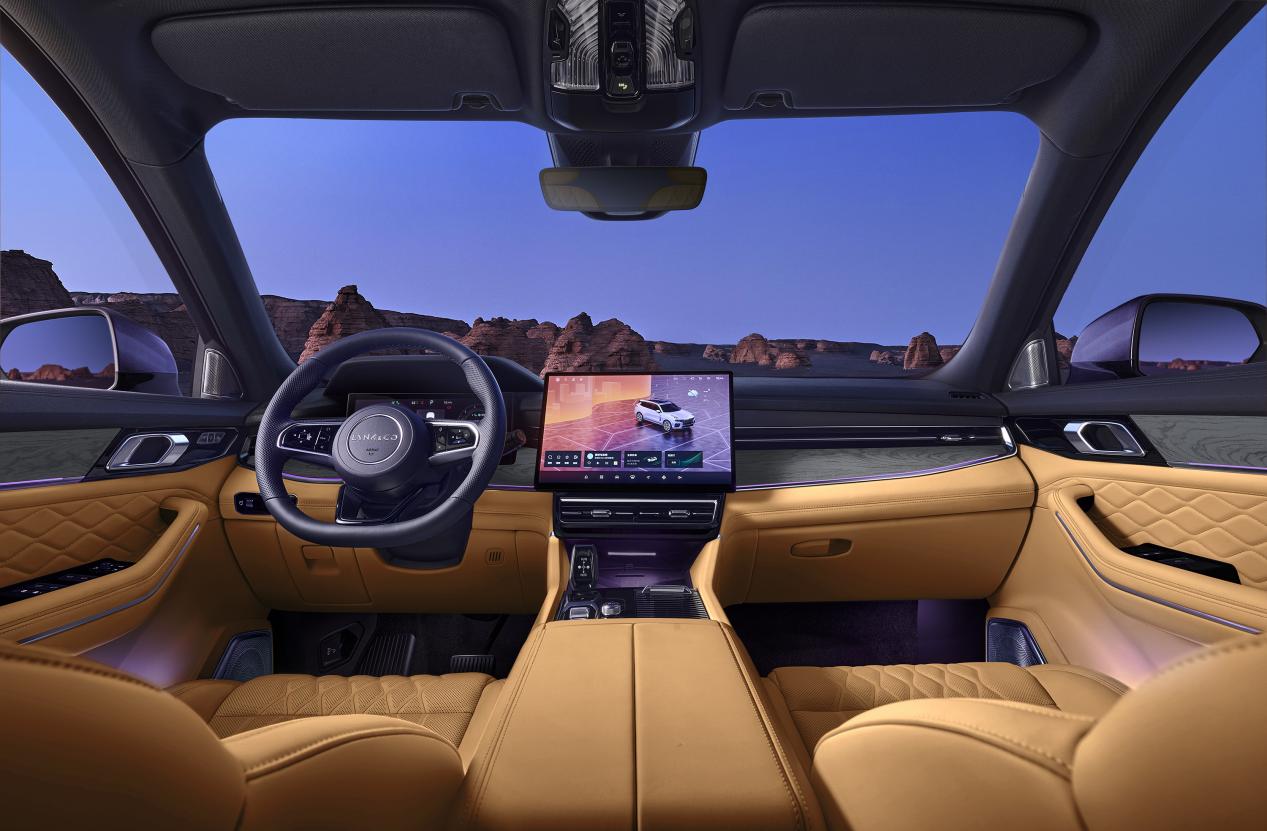 进入车内,豪华感直接拉满。全新日光米内饰配合Nappa真皮包裹和木纹饰板,兼顾质感与温度。二排行政级座椅宽1366mm,坐垫深540mm,腿部空间最大可达1130mm,配备通风、加热与8点按摩功能。中央扶手集成多功能控制区,可展开小桌板,还能组合成双“沙发床”或2米大床。前排座椅也不逊色——副驾电动腿托、方向盘加热与记忆功能等贴心配置齐备,为每一次出行带来放松体验。