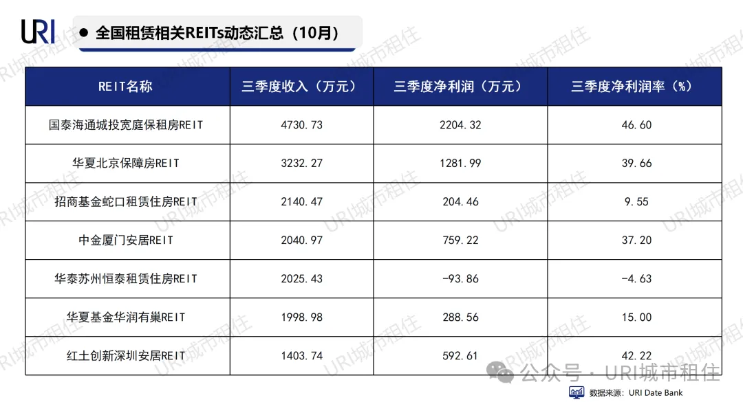 租赁住房REITs三季报显现行业分化,盈利双雄”格局初现