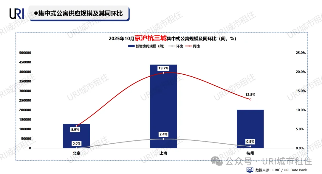 数据显示,重点城市集中式长租公寓供应持续放量,尤其上海市场表现突出,反映出机构化租赁住房发展的加速态势。
