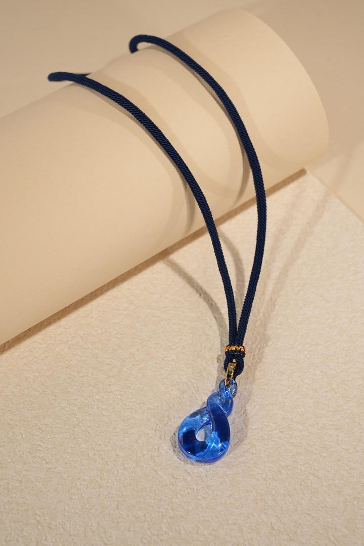 而最吸睛之处,当属吊坠中间扭转的部分。这一设计大胆而独特,打破了常规的静态格局,呈现出一种灵动的动态美感。扭转的形态,似是命运在波折中寻求转机,又如同时间的流转,充满了无尽的张力与变化 。当光线洒落在吊坠上,琉璃的光泽与扭转部分的起伏相互交织,光影变幻,美不胜收,让整个吊坠宛如一件流动的艺术品,引人入胜。