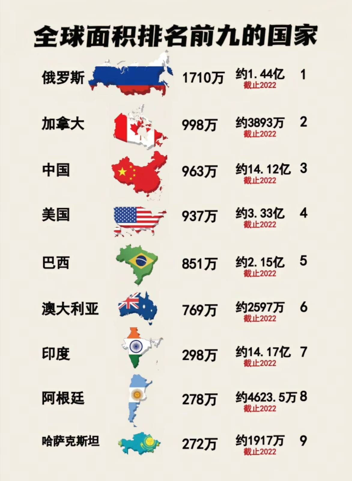 全球各国领土面积排行榜来了,看看那些国家面积最大呢?