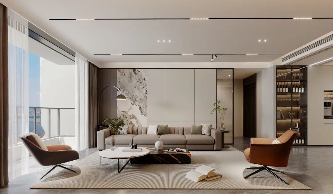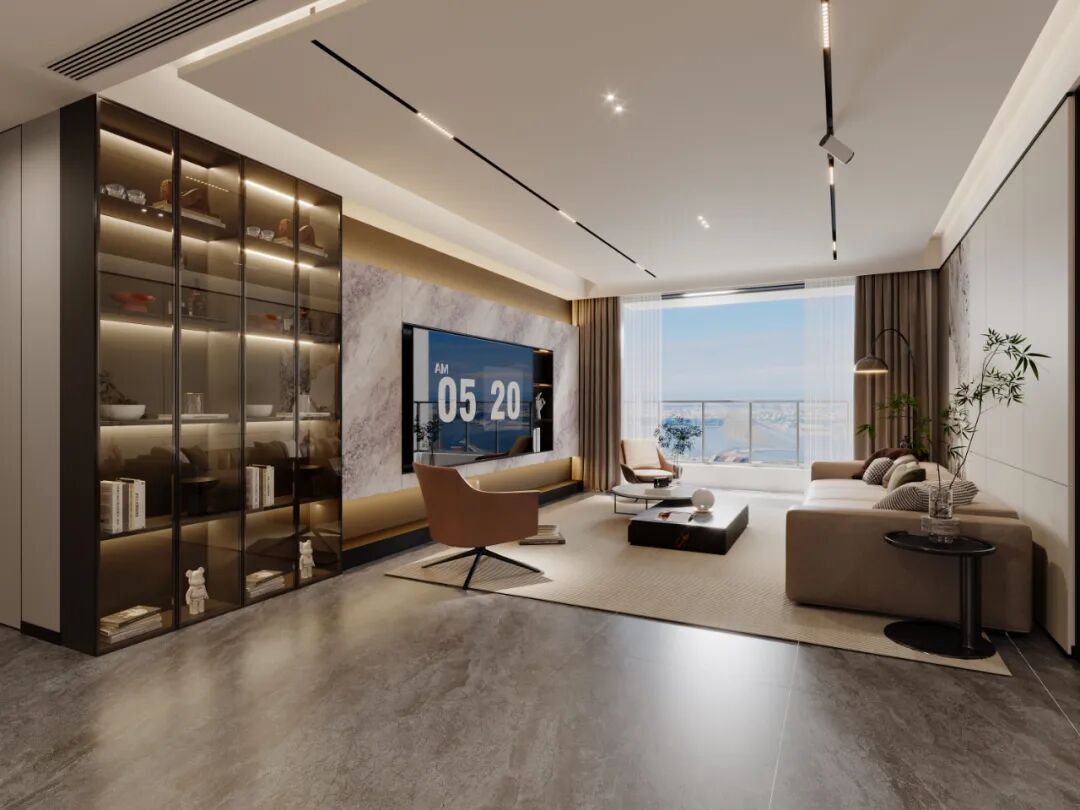 在山河一品 205㎡的设计中,致力于让轻奢回归生活本质。以大理石、金属等材质勾勒精致轮廓,借高级灰与暖调色彩平衡空间情绪,同时通过客厅展示柜、厨房嵌入式收纳等功能设计,让美观与实用共生。希望这套作品不仅是视觉上的轻奢享受,更能成为承载日常温度、适配居者生活节奏的理想空间。