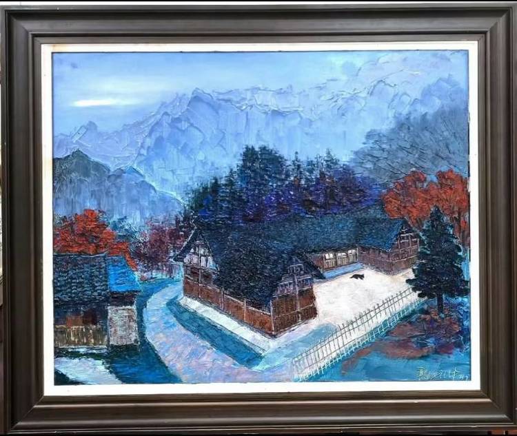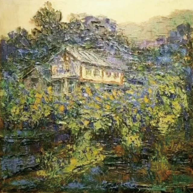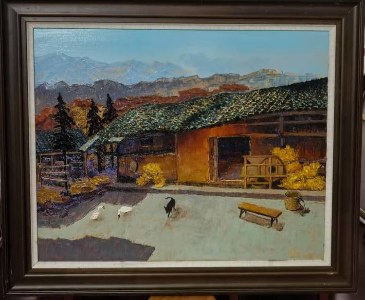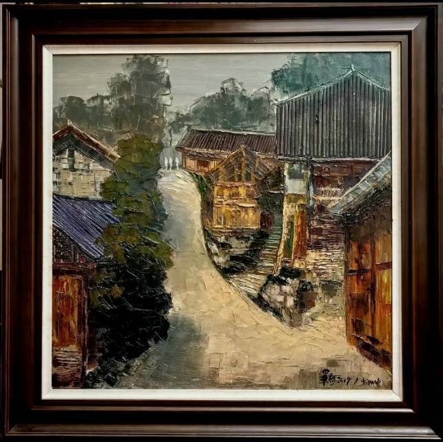 爷爷的老瓦房(80X100)胡中自述:我天生对形色敏感,对艺术执着。我爱绘画,走到哪儿就画到哪儿,这是我生活的一部分。我的绘画强调四点:一是在造型上强调似与不似;二是提高暗面的亮度,寻找表现丰富的色彩;三是追求强烈的色彩对比,从中寻求和谐;四是追求笔触与物体的统一,即是落笔见影。我今年68岁,不知不觉也留下了不少画作,这些画作大都展现了中国乡村房屋建筑的变迁,讴歌了中国特色社会主义。这些画作就像我的脚印,证明我真真实实的走过、参与过。