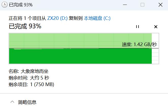 ▲实测读取速率为1.42GB/秒,并且全程读取稳定不掉速。