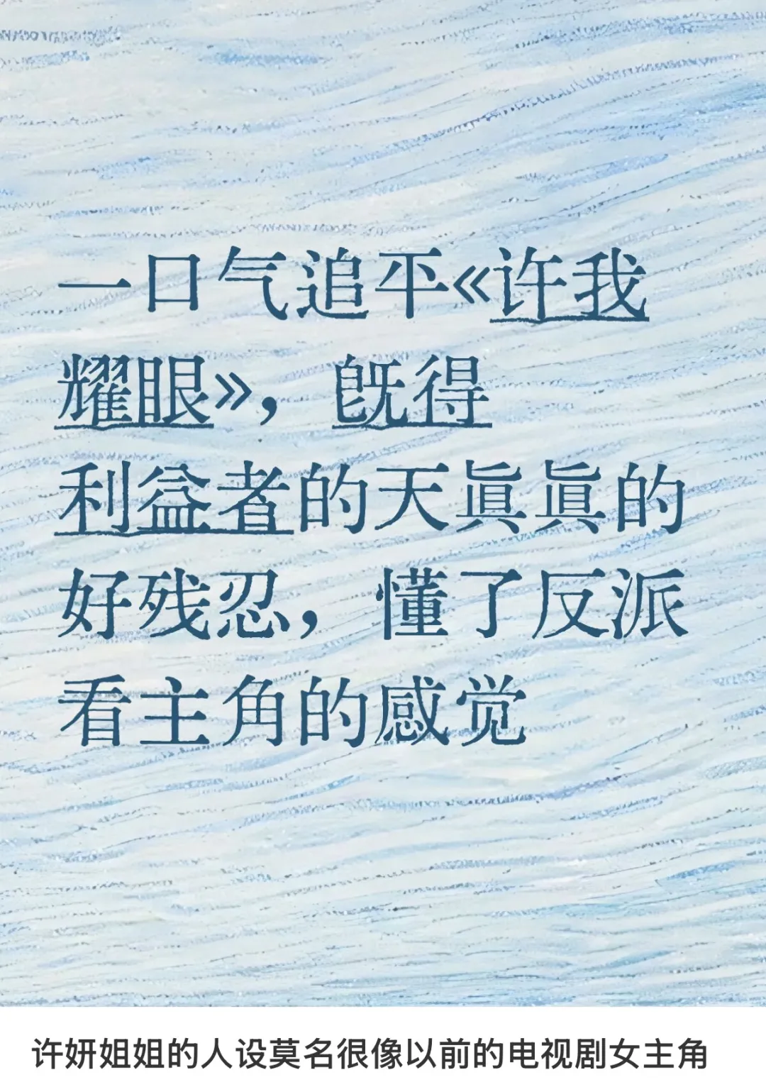 通过人设的错位与重构,《许我耀眼》在叙事层面实现了有效创新。
