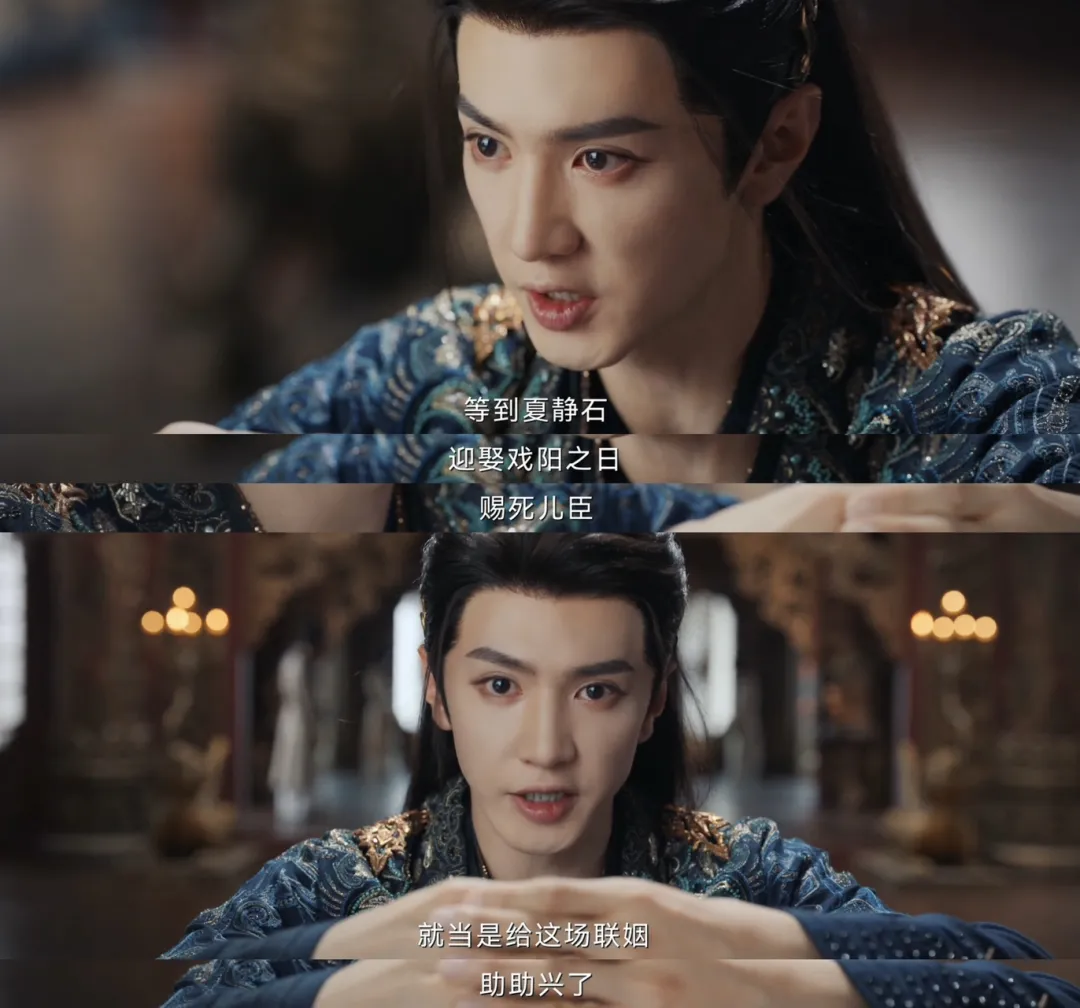 比如男主角凤随歌(陈哲远 饰),作为夙砂国不受宠的大皇子,他并未选择隐忍求生,反而行事高调、爱恨分明,为阻止妹妹和亲不惜对父亲以死相逼。这样浓墨重彩的男主角同样给观众带来了新鲜感。