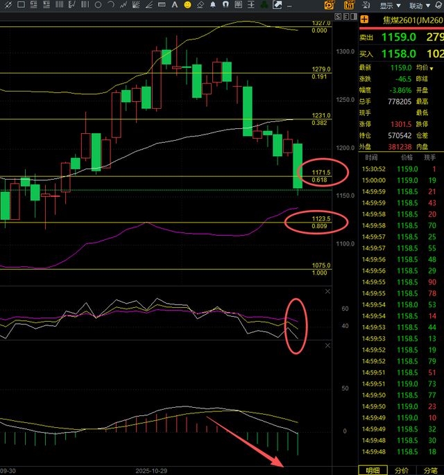 技术面:焦煤夜盘操作核心: 在1,140-1,180 元 / 吨区间高抛低吸,反弹至 1,170-1,180 做空,回调至 1,140-1,145 做多,严格止损,轻仓操作。