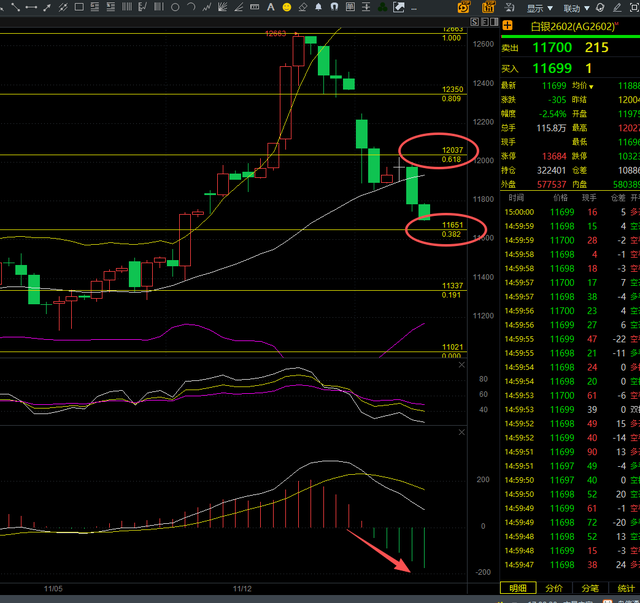 技术面:成交量放大 20%,持仓量减少,呈现 "量增仓减" 特征,表明空头主动增仓,多头止损离场,高位破位下行,已跌破 12,000 元 / 千克关键支撑,技术面呈现明显弱势