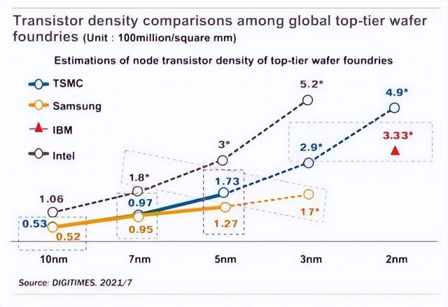 但这次没有了梁孟松,三星的技术就不行了,3nm时不仅晶体管密度是友商中最低的,不如英特尔的7nm,台积电的5nm工艺。