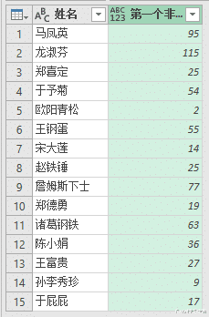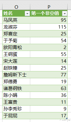 案例:从下图 1 中提取出每个姓名所对应的第一个非空值,见黄色区域。