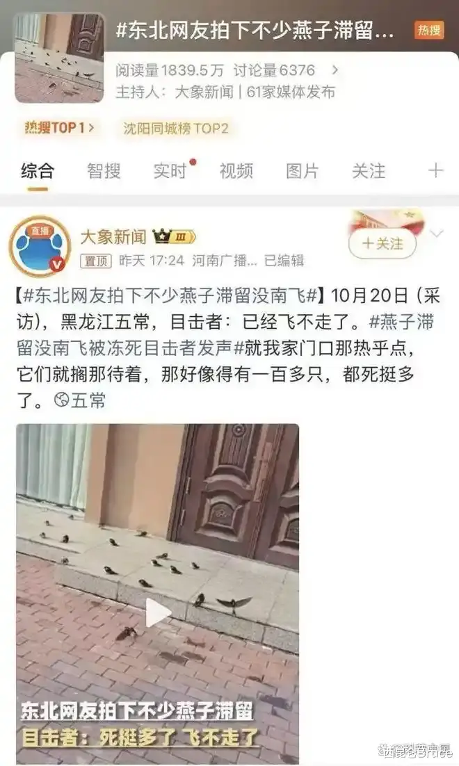 10月25号,一则关于“黑龙江五常市大量燕子滞留地面”的视频在网络上引发广泛关注。