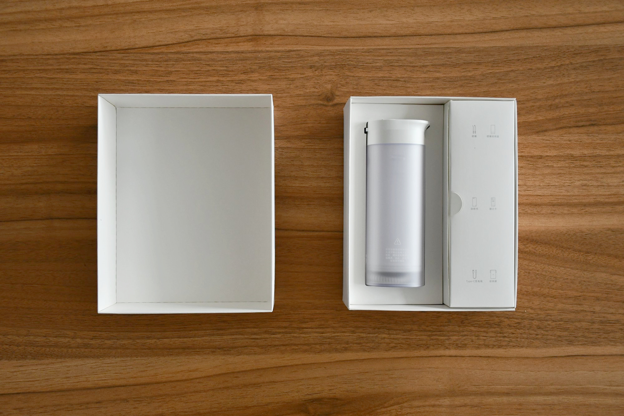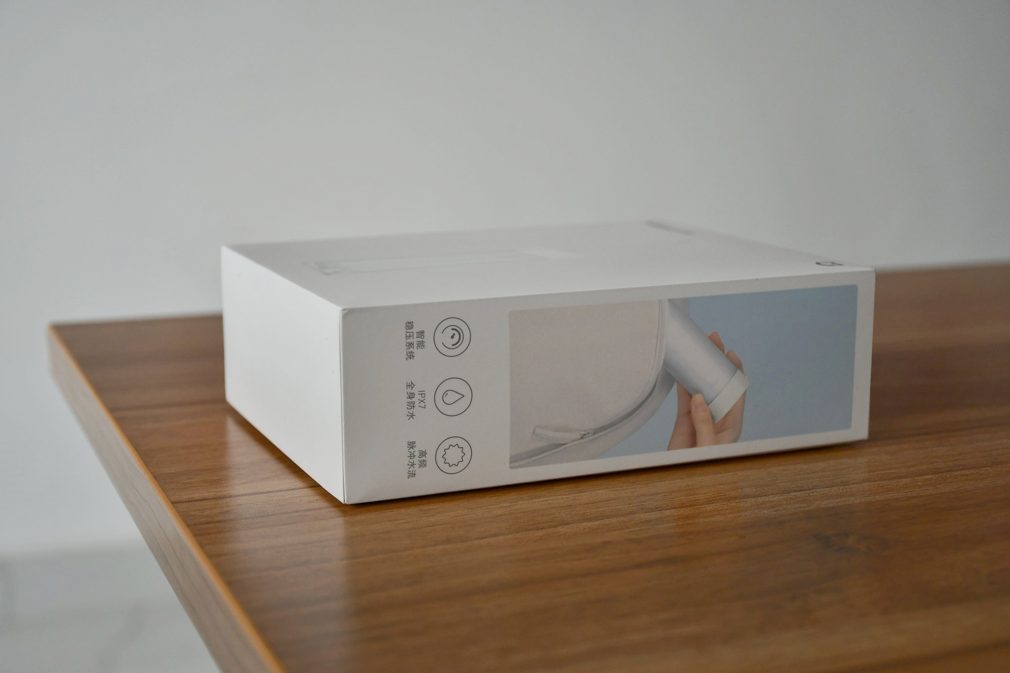 虽然是一款个人口腔护理产品,但外包装盒保持了数码产品风,整体素白色的设计,正面是产品的实物图片,搭配单一名称和标志,走的简约路线。