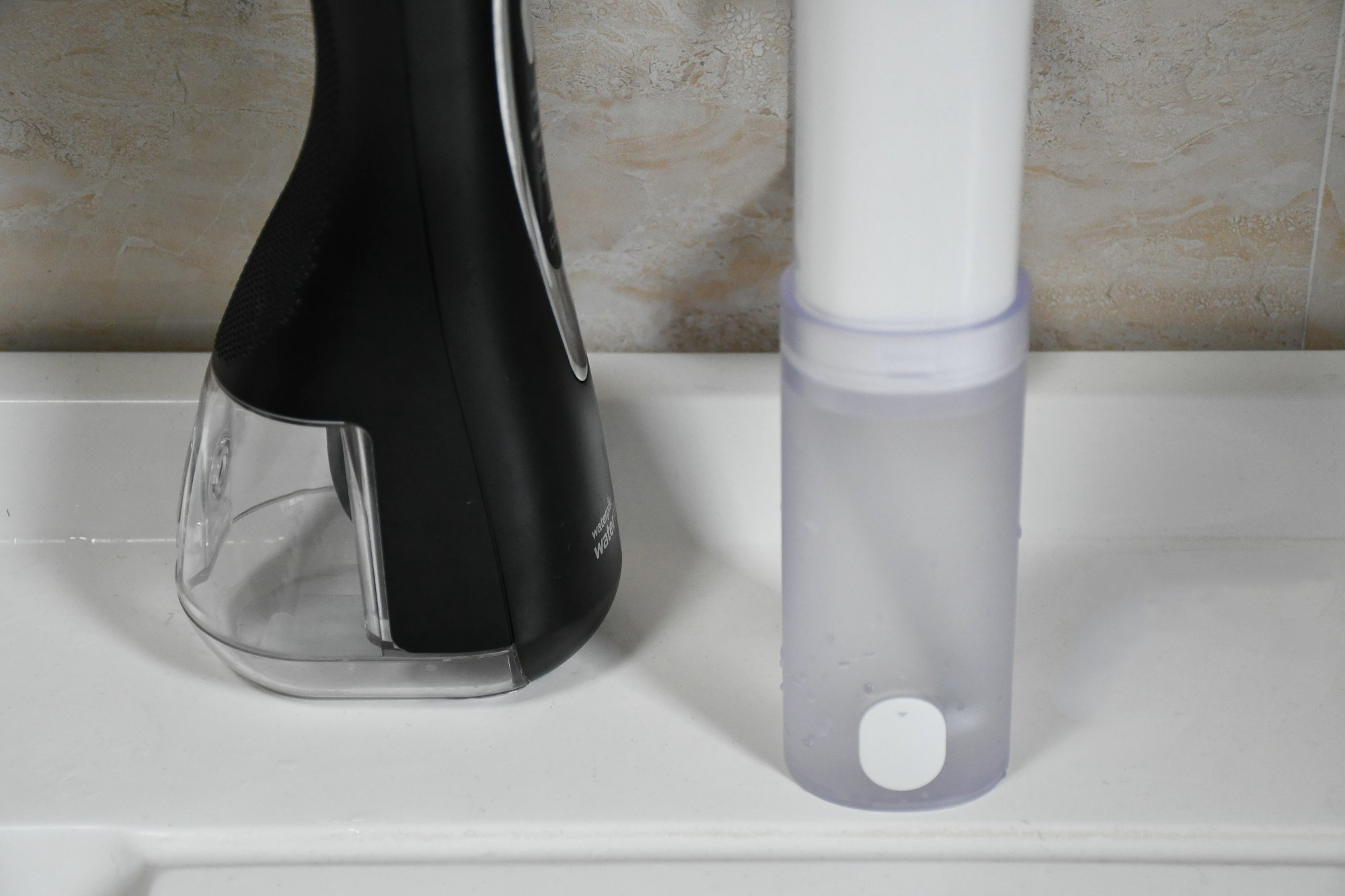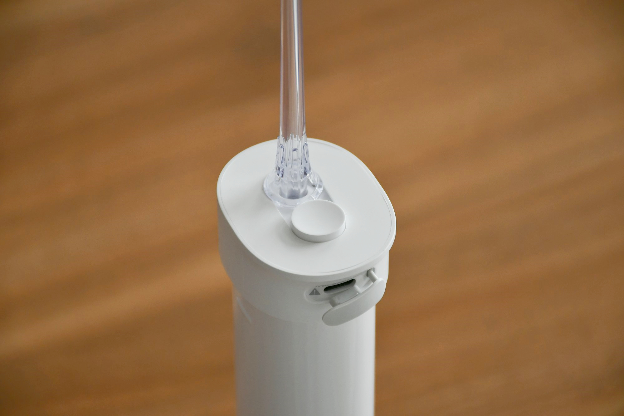 相比较同类型的冲牙器产品,这款产品最大的优势就是便携性,通过伸缩水箱的巧妙设计做到了压缩体积,而且主机藏到了水箱内部,避免了按键误触的风险,做到了轻巧易带。一般来说,便携式冲牙器很难逃出冲牙力度小的窘境,但这款产品强劲模式下可以达到120psi的冲击力度,几乎达到了台式机冲牙器80-90%的功力。像冲牙器这种用了就回不去的产品,在家中配有台式机下,十分有必要再选择一款便携式款用来放单位或旅行使用。