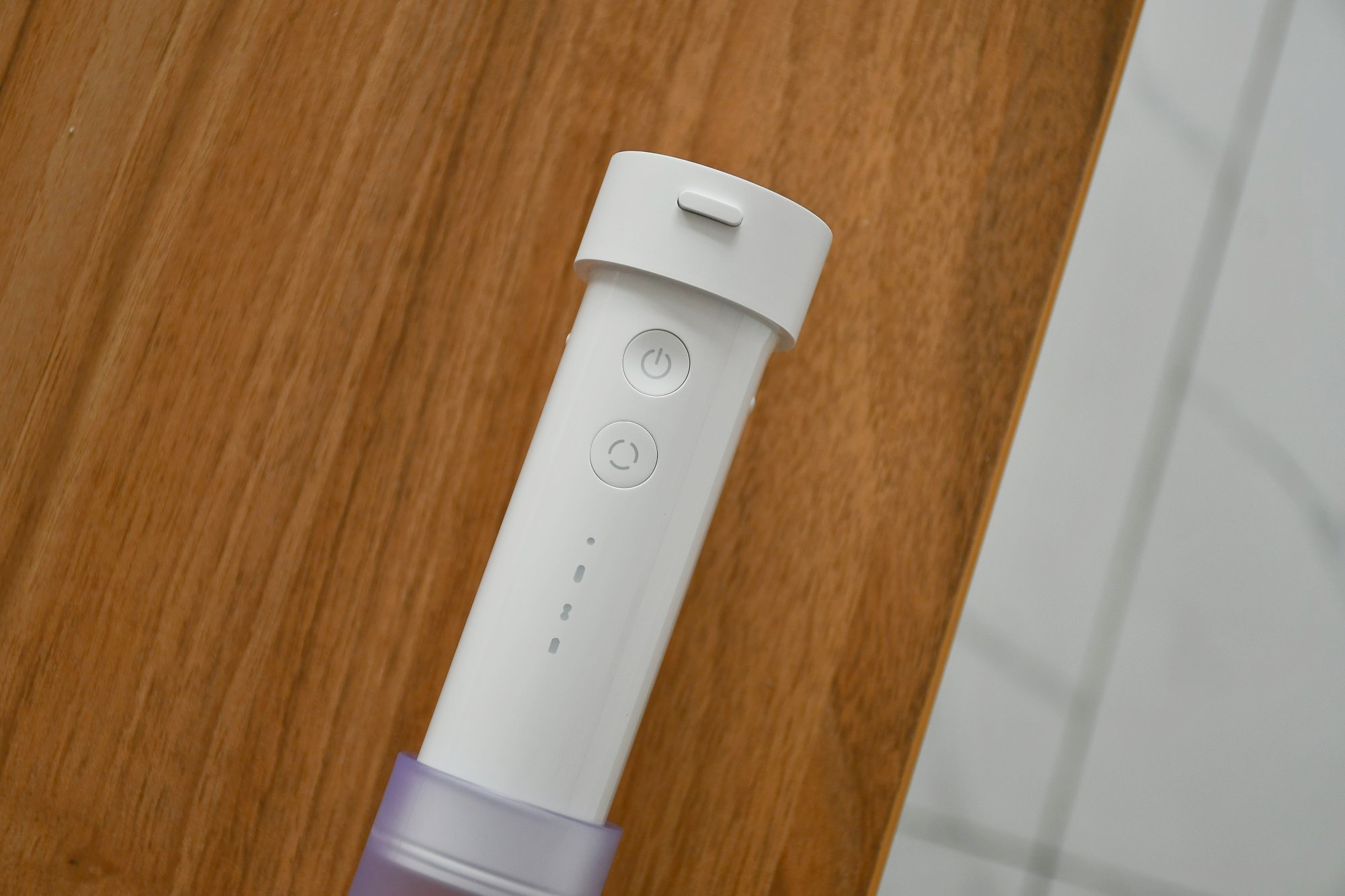 充电接口被放置在了喷嘴拆卸按钮的对侧,由于需要做到整机防水,所以在接口外面安装了一个橡胶塞,需要充电时将橡胶塞打开。