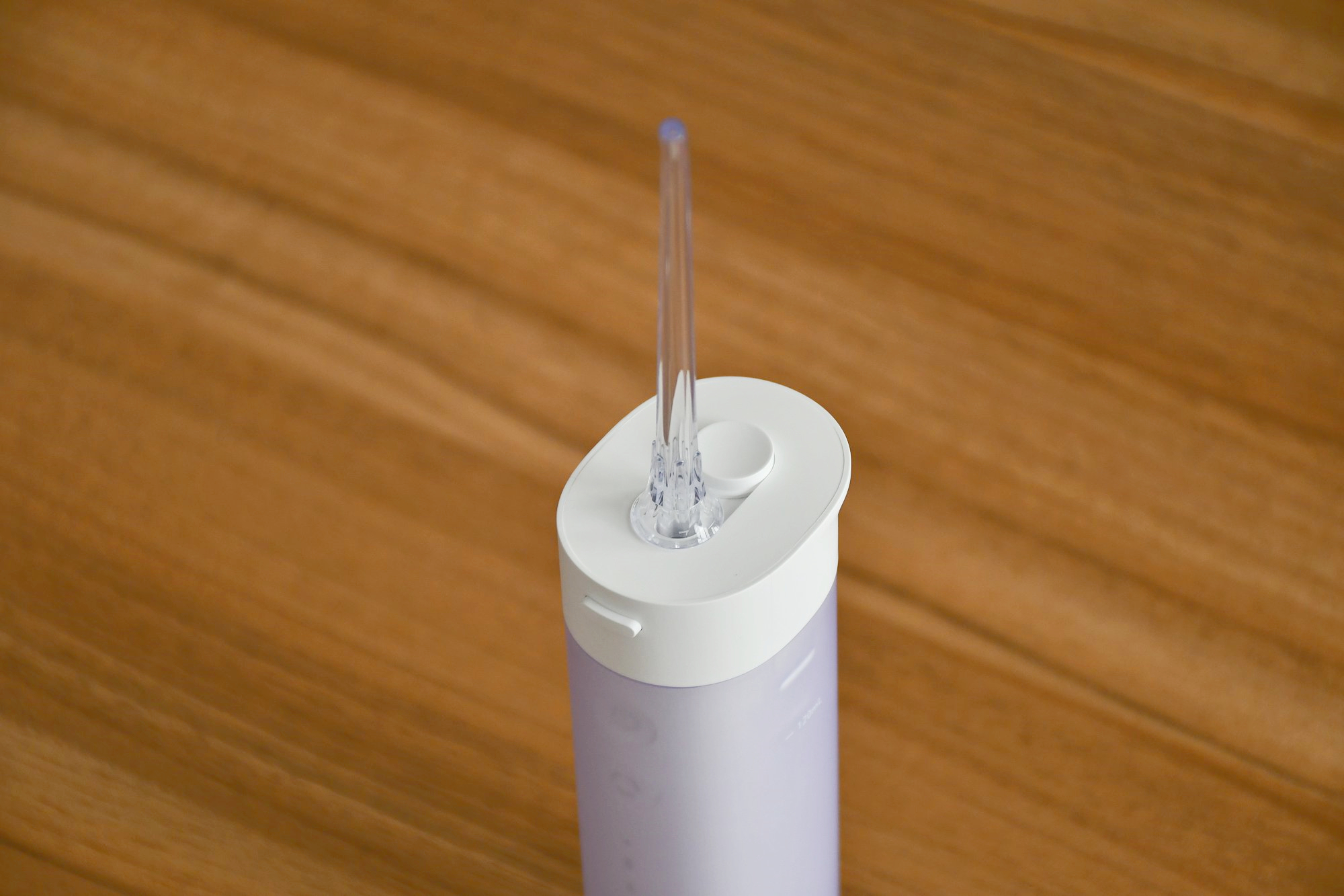 喷嘴收纳盒里装有两个喷嘴,一个是标准型,另一个是正畸型,相比其它一些品牌附送的4个要少一些。这个作为耗材使用,后期是需要根据使用频率定期更换的,通常是每半年更换一次。盒子顶部的开孔可以使得喷嘴在收纳后透气防霉。