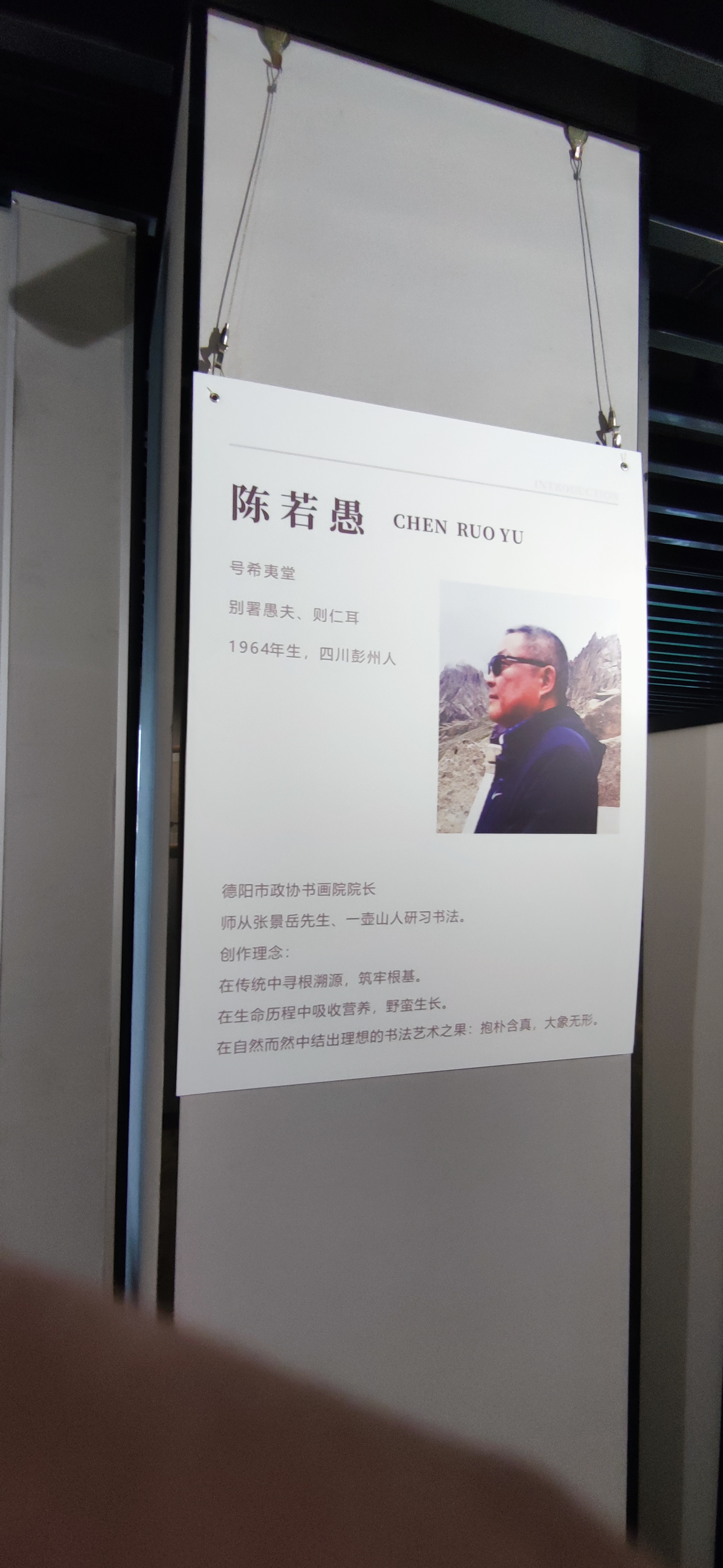 陈若愚号希夷堂,别署愚夫、则仁耳。1964年生,四川彭州人,德阳市政协书画院院长。师从张景岳先生、一壶山人研习书法。创作理念:在传统中寻根溯源,筑牢根基。在生命历程中吸收营养,野蛮生长。在自然而然中结出理想的书法艺术之果:抱朴含真,大象无形。