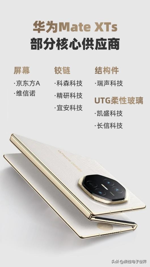 显示屏供应商为京东方A、维信诺等,而UTG柔性玻璃来自凯盛科技、长信科技等,由于材料升级,单机价值量有所提升。
