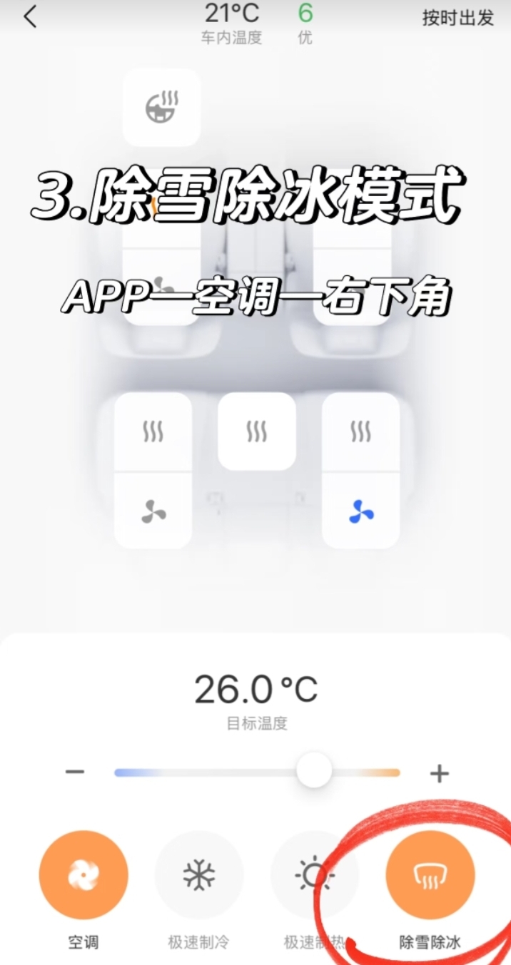 3️⃣前风挡除雪除冰:开启后空调系统会加热前风挡,消除冰雪✅