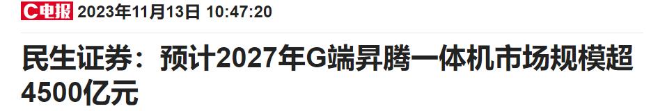 升腾已串起千亿级产业链,研究机构预计 2027 年升腾一体机市场规模超 4500 亿元。