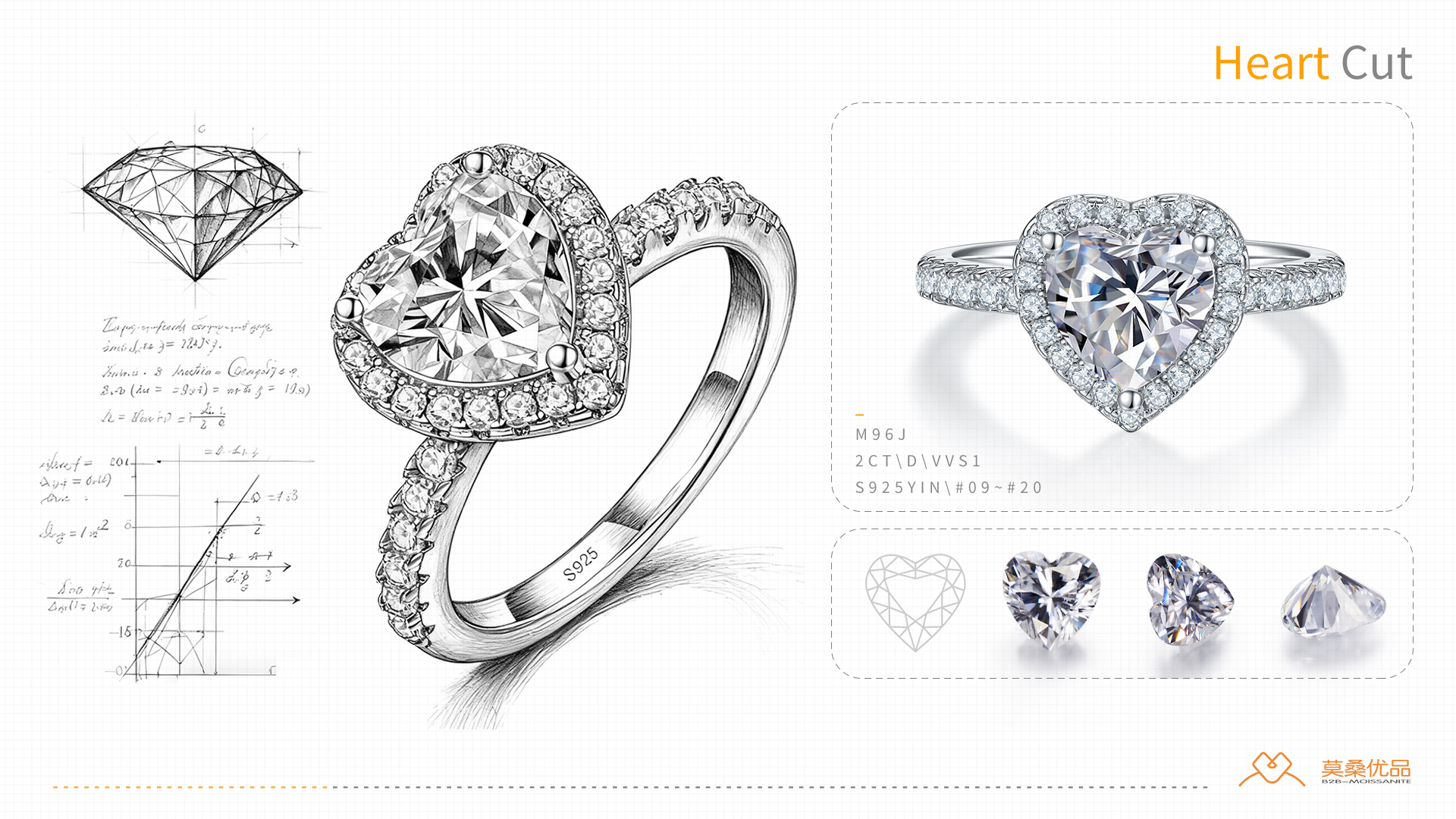 心形钻石以经典的心形轮廓为基础,通过 59 个精心打磨的切面,将钻石的火彩与浪漫寓意完美融合。这种切割造型犹如将情感凝结成璀璨永恒,当光线穿透钻石,亭部与冠部的切面形成细腻折射,在每一个角度都能呈现出温柔闪耀的光晕,恰似恋人眼中的深情。心形钻石在视觉上能柔和手部线条,尤其适合作为婚戒或纪念日礼物,承载浓烈的情感表达。