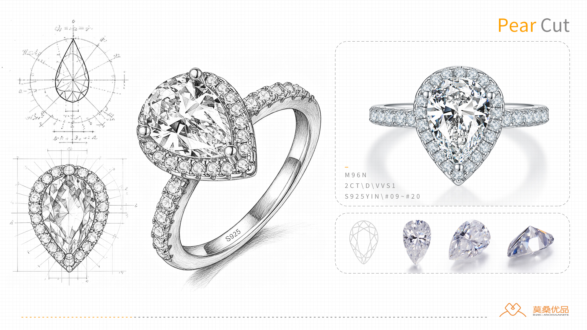 1.按手型选:粗短指优先选梨形、椭圆形(纵向拉长);圆润指选公主方、祖母绿形(利落线条修饰);细长指可随意选,尤其适合马眼形、梨形(放大优势)。