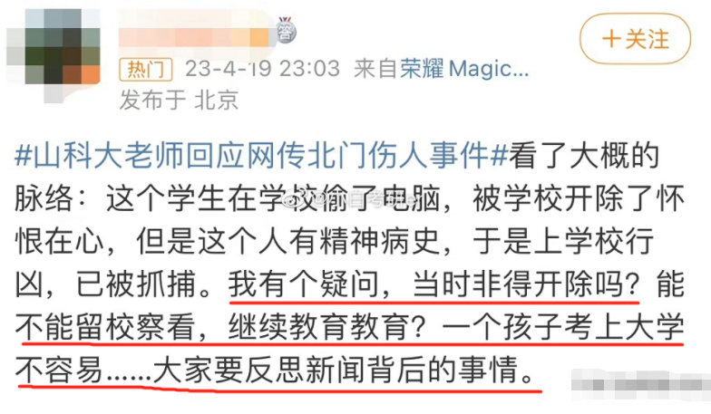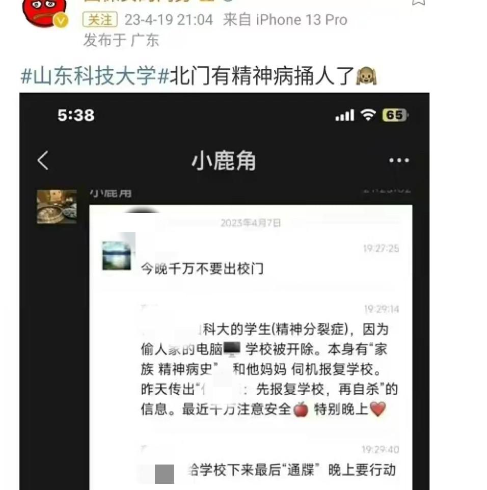 4月19日傍晚,网传山东科技大学捅 人 事 件冲上热搜,没想到是真的,晚上11点多警方就通报了。