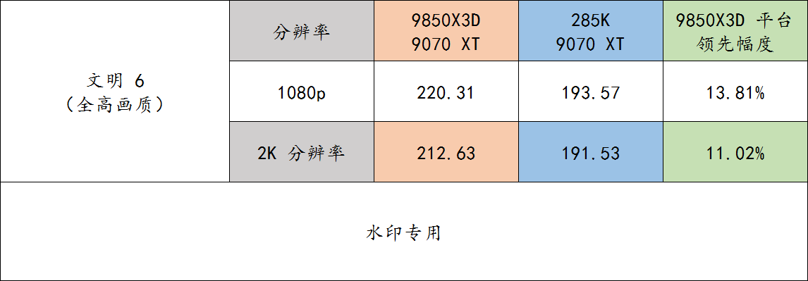 ▲ 《文明 6》作为长盛不衰的游戏,在 Epic E 父免费送了之后,基本上人手一份,如果你想更快进行下一回合,9800X3D 真的能帮你节省时间,这点已经经过了广泛的验证。更强的 9850X3D 会带来更为出色的游戏表现。