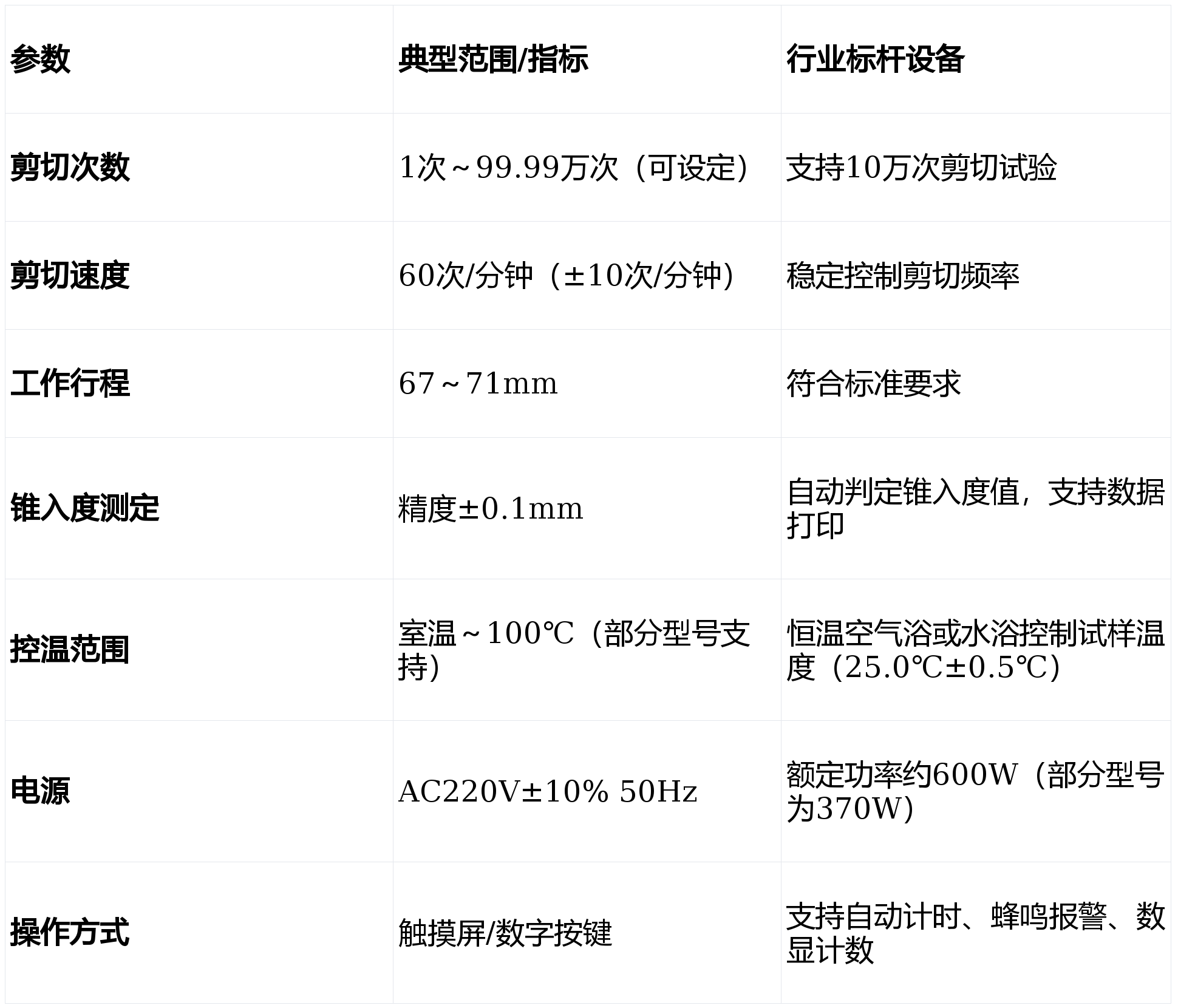 仪器通过模拟润滑脂在实际工况中的往复运动(如轴承、齿轮等部件的摩擦),对试样进行高频率剪切(通常60次/分钟)。剪切次数可设定为1次、5次、10次、100次、1000次、10000次等,以覆盖不同测试需求。