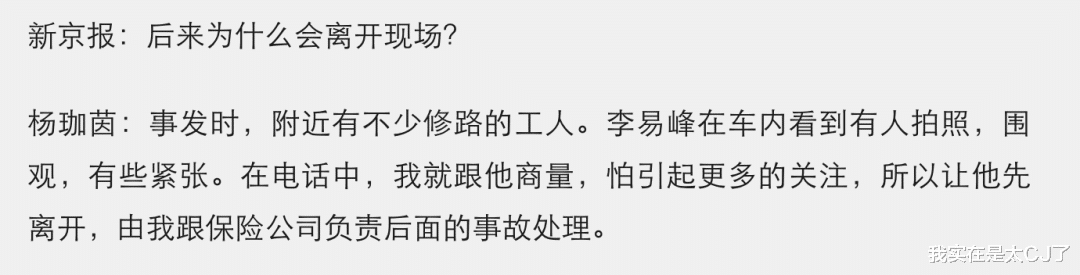 但问题在于,这些都是无法搬上台面说的猜想,并不能成为事发后金晨没自行报警、没在现场等交警认定、没固定足够多证据以至于让助理有撒谎空间的正式理由。