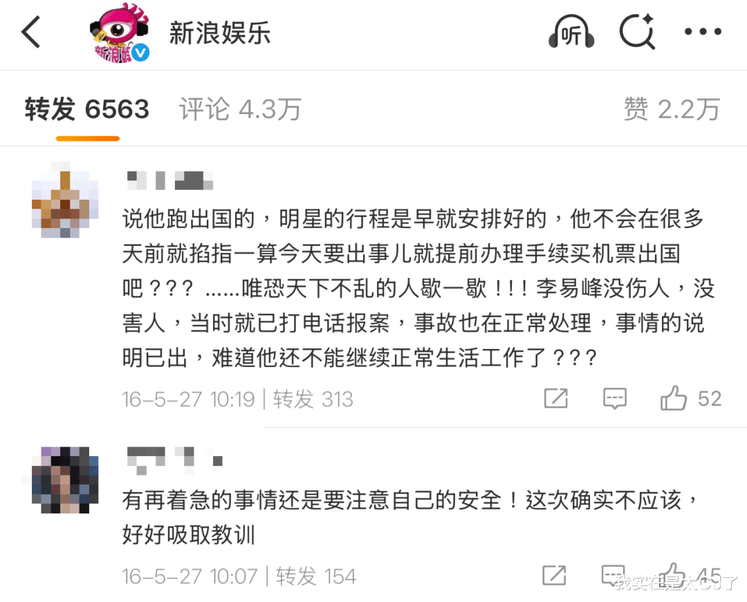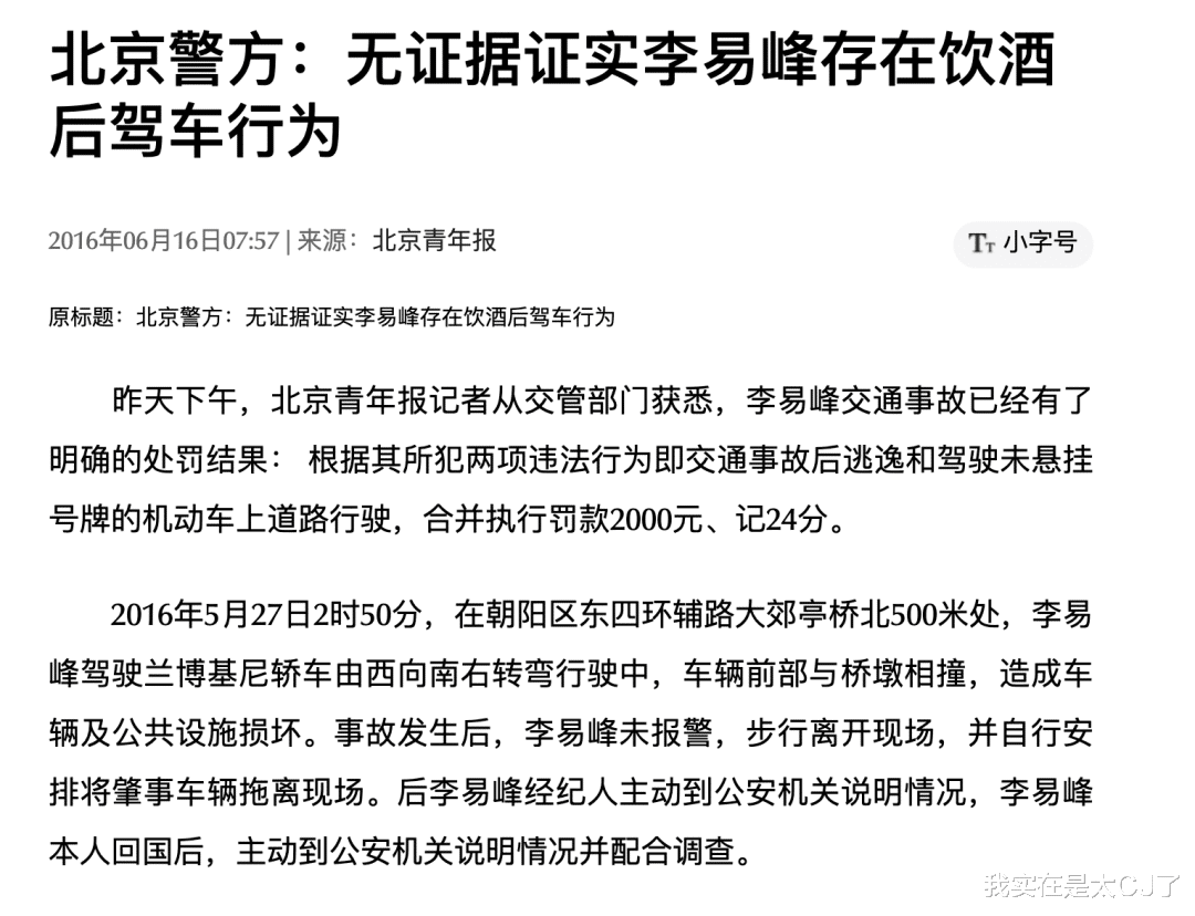 相对比谢霆锋当年出事全程有媒体和警方压迫紧盯,过程不算100%透明也至少做到了100%清晰,2016年李易峰出车祸就显得有点没头没尾。