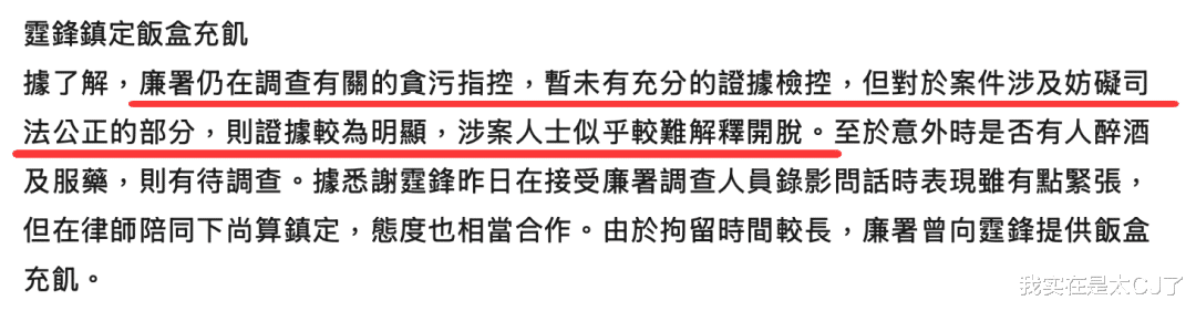 经过约36小时的调查后,谢霆锋才被获准保释,而廉政公署又进一步扩大了调查范围,怀疑幕后还有黑手在操控这一切。