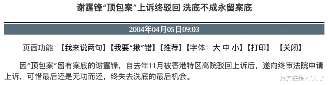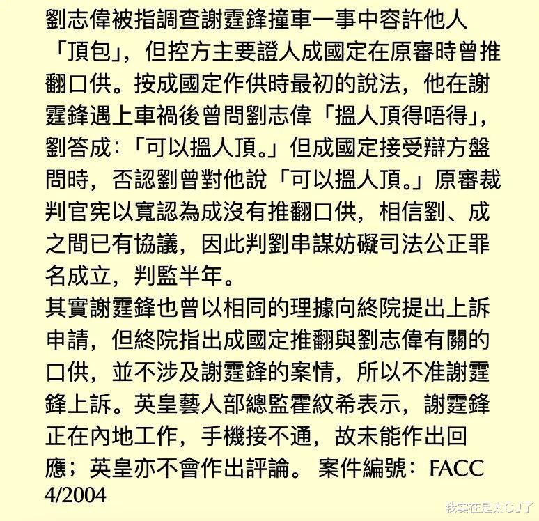 法院最终驳回谢霆锋的上诉,却2004年为已经服完刑的刘志伟翻案改判“无罪”。