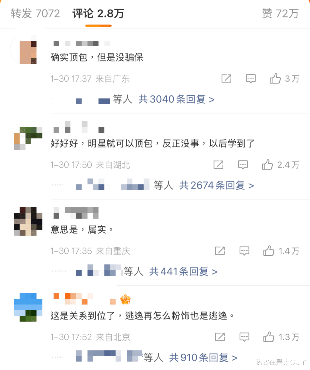 但看看当时的热转和评论,会发现问题还是出在“车祸了没定责就走人”上面,粉丝打着“工作早就定了不能改”大旗极力维护👇