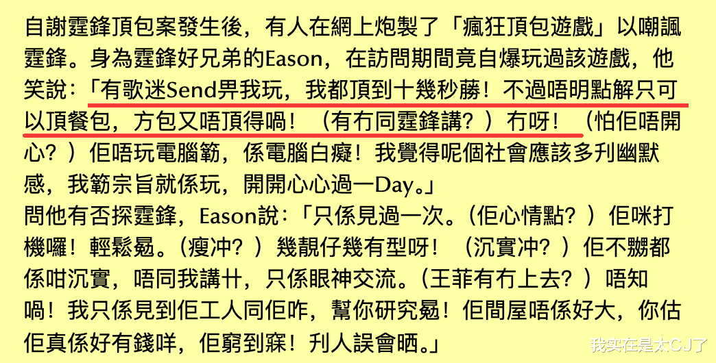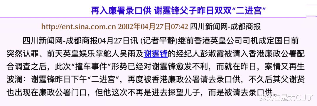 更有人做了“疯狂顶包游戏”以示嘲笑,还发给谢霆锋好兄弟陈奕迅让他。出事的红棉路也从此被戏称“霆锋弯”,被香港媒体叫了十几年……
