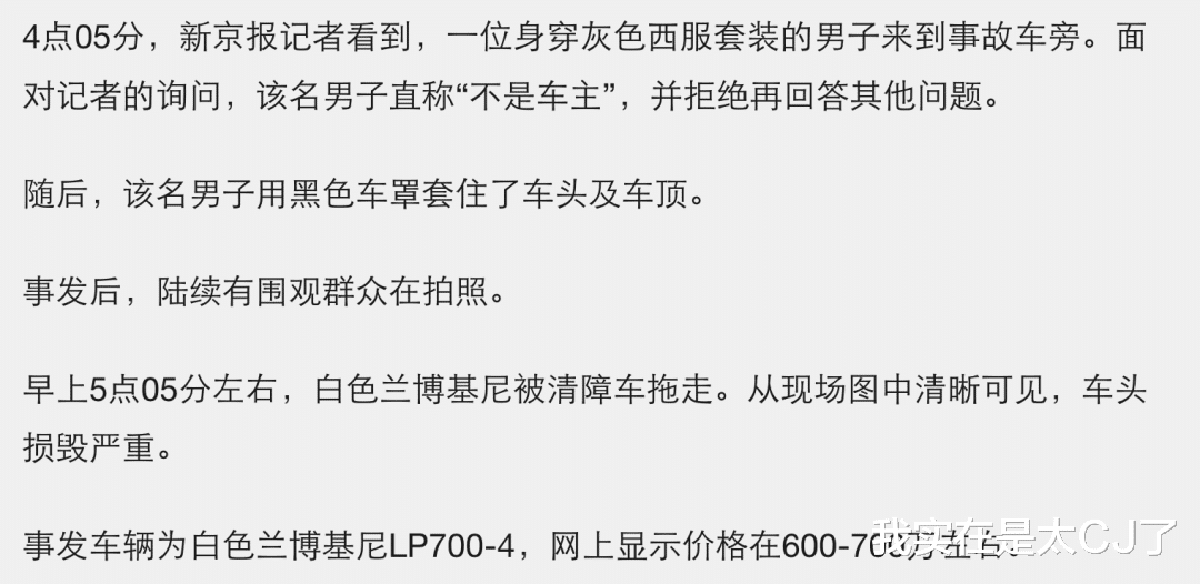 凌晨3点出事,4点多有人过来拿黑色车罩罩住车头和车顶,但是在场围观的众人都看到了开车的就是大明星李易峰。