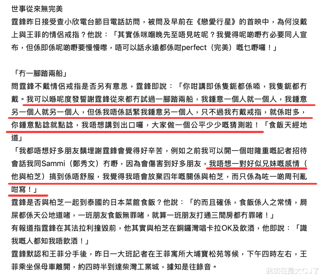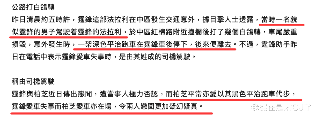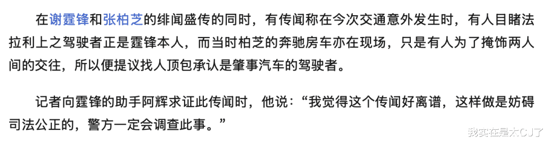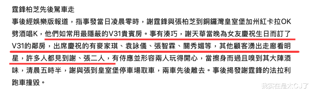 但新闻里说“出事前不少人目睹他和张柏芝在卡拉OK喝酒”,谢霆锋倒有可能撒谎,因为大家撞到锋芝唱K是个无意中被印证的实锤。