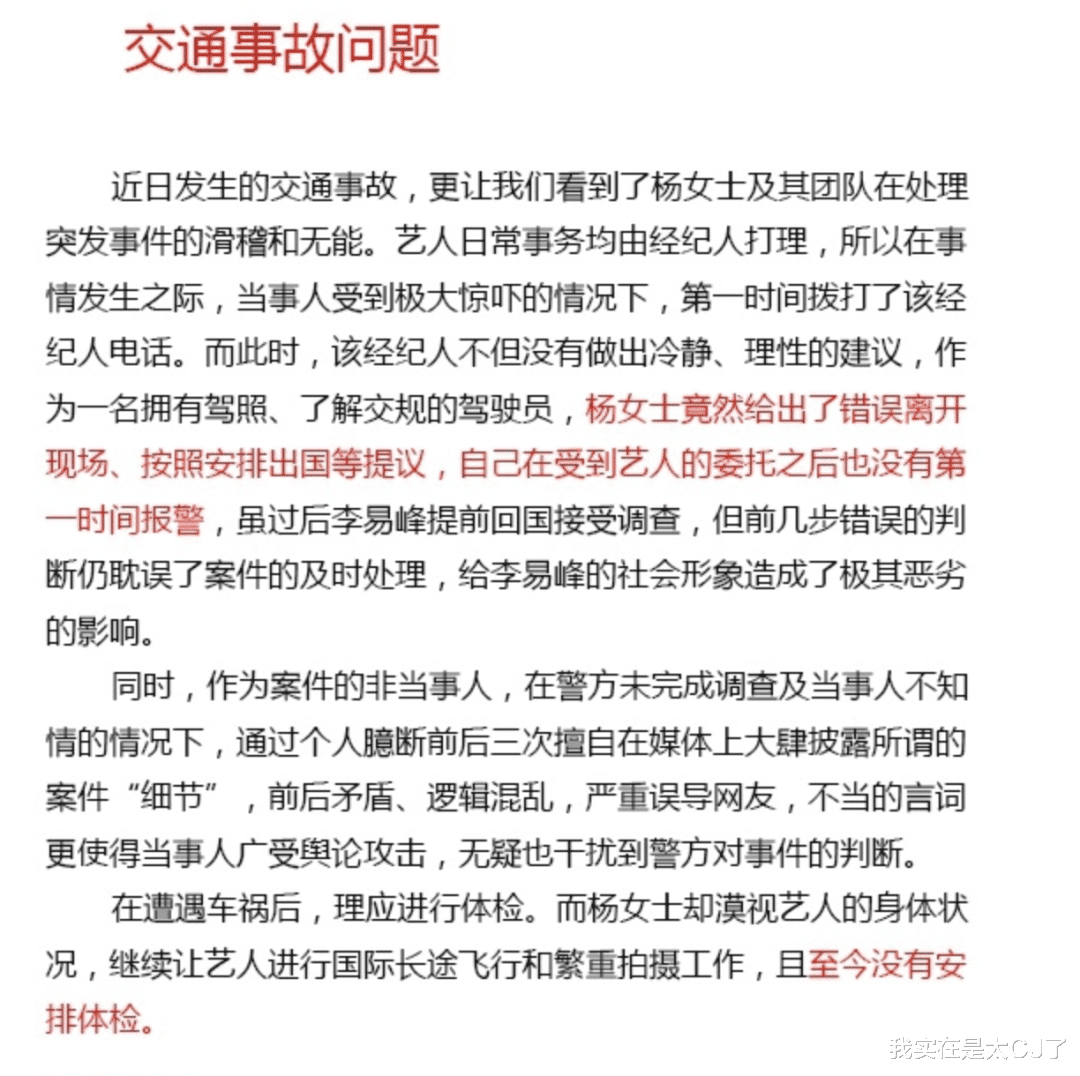 罪名之一就是“在李易峰交通事故事件后,对应不合理给李易峰造成了恶劣影响”,而且“至今没有为艺人安排体检”…………